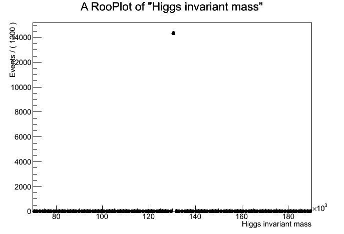 RooRealVar Hmass(“Hmass”, “Higgs invariant mass”,70e+3,190e+3);