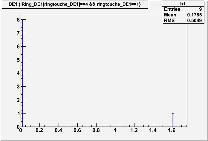 I think what you meant may have been:t->Draw("DE1>>h1","iRing_DE1[ringtouche_DE1-1]==4 && ringtouche_DE1==1","")ort->Draw("DE1>>h1","iRing_DE1[ringtouche_DE1-1]==4 && ringtouche_DE1==2","")