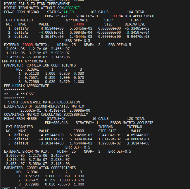 Warning in : Minuit2Minimizer::Minimize Minimization did NOT converge, Edm is above max