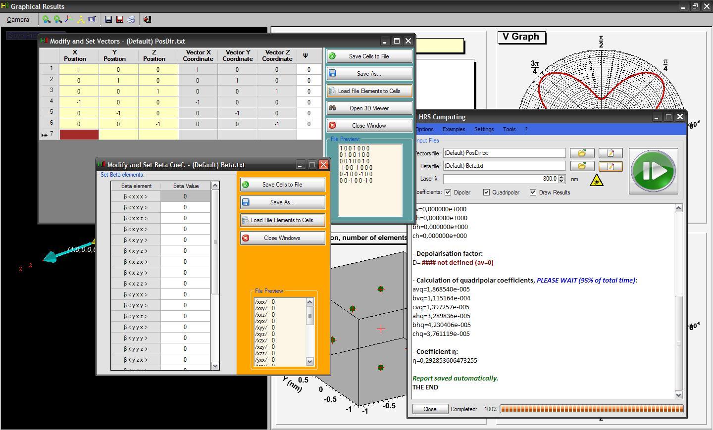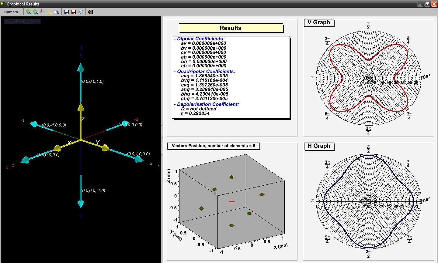 It allows the visualization of simulated polar graphics generated by HRS, giving different theoretical coefficients that can be useful to determine the microscopic structure of composites, molecules, etc…