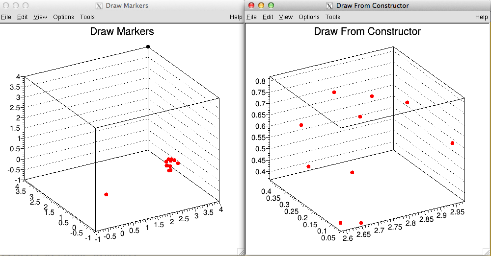There are two functions in the code, demo1() plots the data using TPolyMarker3D points on an existing graph – this is where I see an issue. For comparison, demo2() plots the same data directly using the TGraph2D constructor.