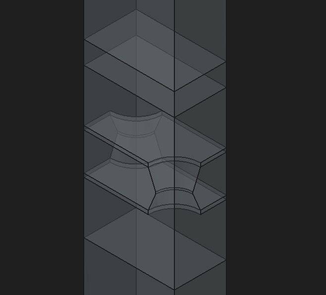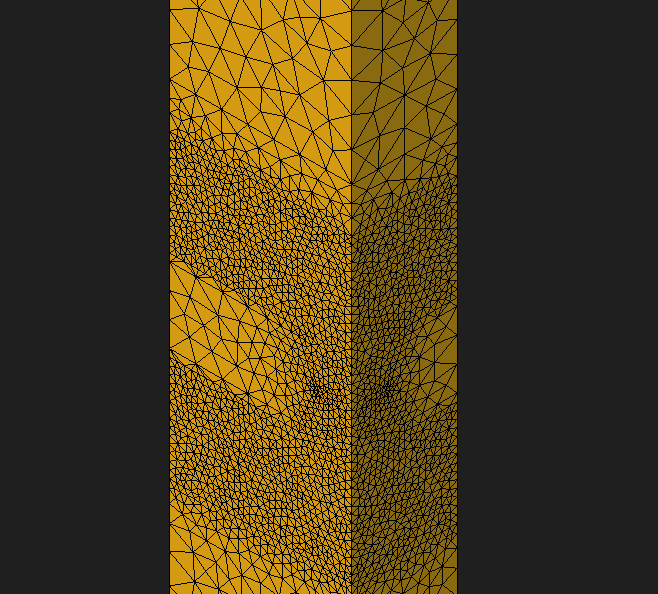 I am trying to simulate a 3 layer GEM detector. For this I have created a model and calculated the E-Flieds using ElmerFEM. In order to define finer meshes around the foils I have cut the gas into smaller chunks. Together with the foils I get a total of 20 volumes 11 of which are suppose to be gas. Her you can see the section of one of the foils: