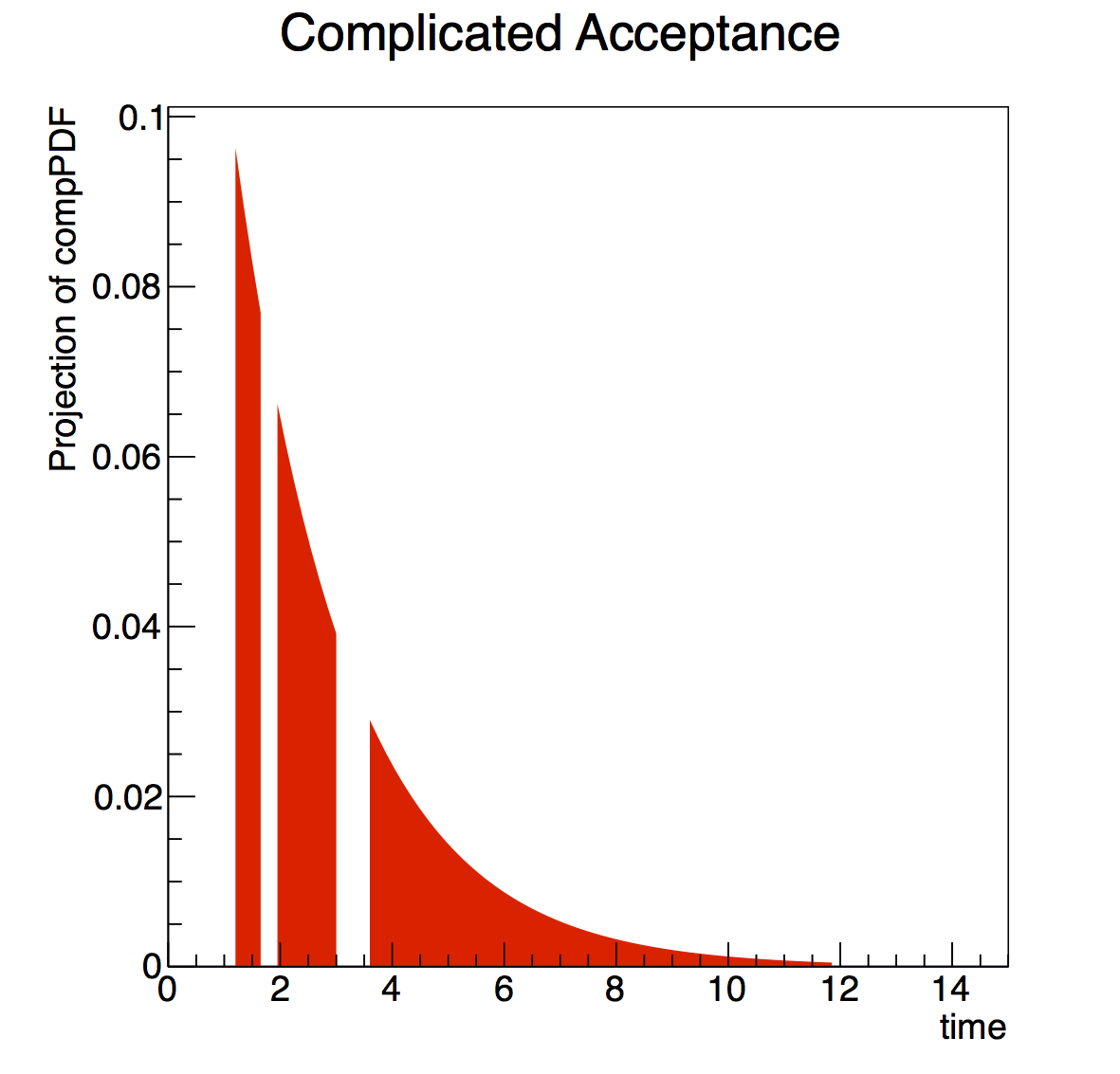 Firstly, I’d like to thank the RooFit team for the extremely useful RooFit tutorials, especially number 314 which shows how to fit to lifetime data where each event has a minimum time, a “turning point”, before which it would not be accepted. I.e. the PDF looks something like this: