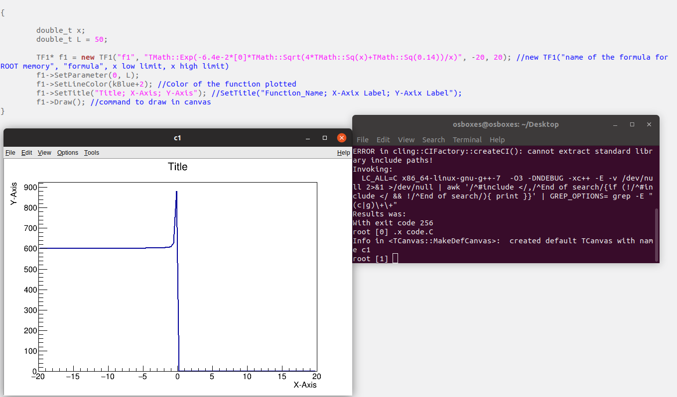I don’t know what to make of your error message, I don’t have it after running your code. Probably has something to do with your ROOT installation. Regarding the plot, as I said earlier, you should initialize L