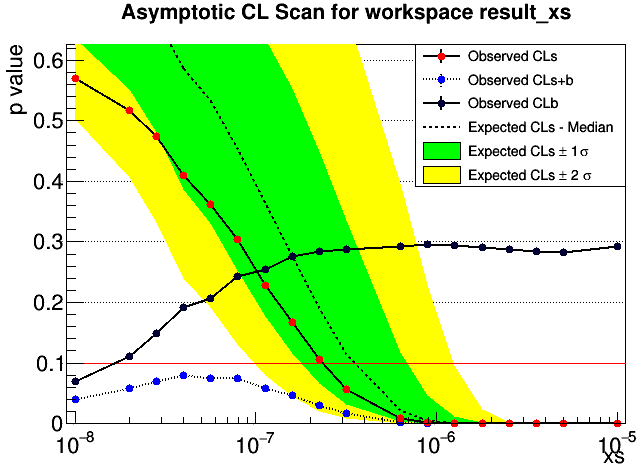 KEY: RooStats::HypoTestInverterResult result_xs;1 HypoTestInverter Result For xs