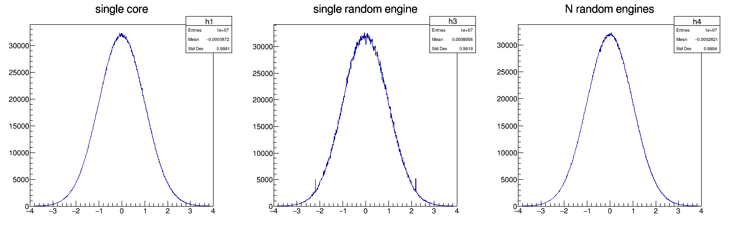 std::cout<<std::fixed<<std::setprecision(3)<<"Single random engine (MT): "<<h3->GetMean()<<" +- "<<h3->GetStdDev()<<std::endl;