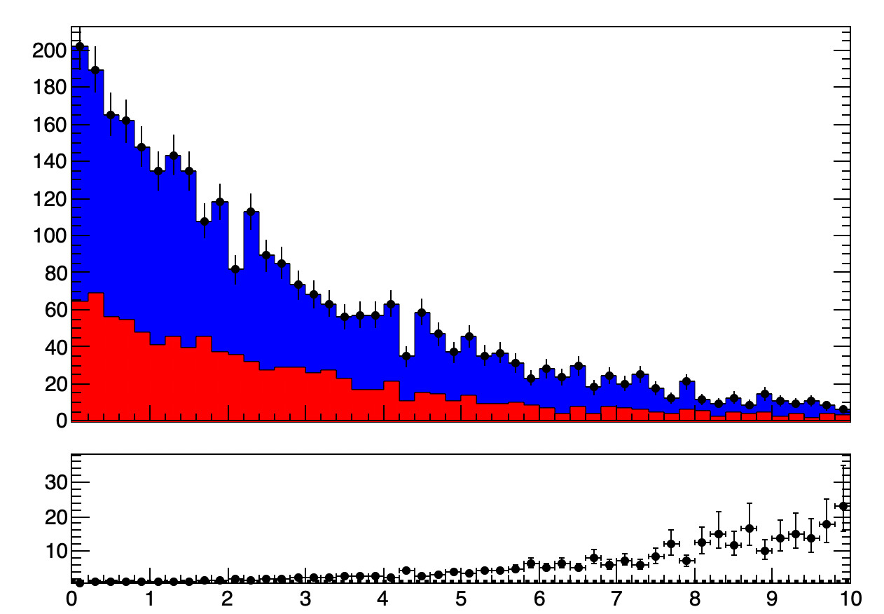 auto h1 = new TH1D("h1", "TRatioPlot Example; x; y", 50, 0, 10);