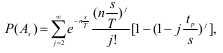 I’m trying to run a series summation in ROOT, regarding the probability of collisions in data transmission. I want to reproduce the following the graph attached, which is the result of the equation attached. There, n is the number of sensors transmitting, T is the repetition time, s is the observation time and tp is the transmission time…j is the number of transmissions within s time. I tried defining a function for this: