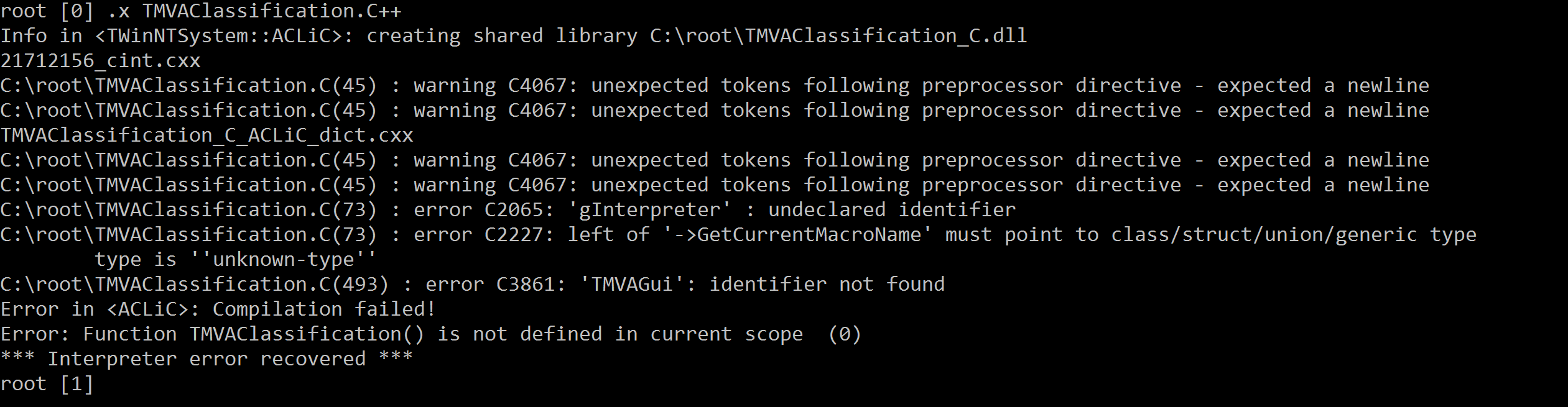 I’m trying to run the T Multi Variate Analysis classification example (C:\root\tmva\test\TMVAClassification.C) and I get an error the following error: