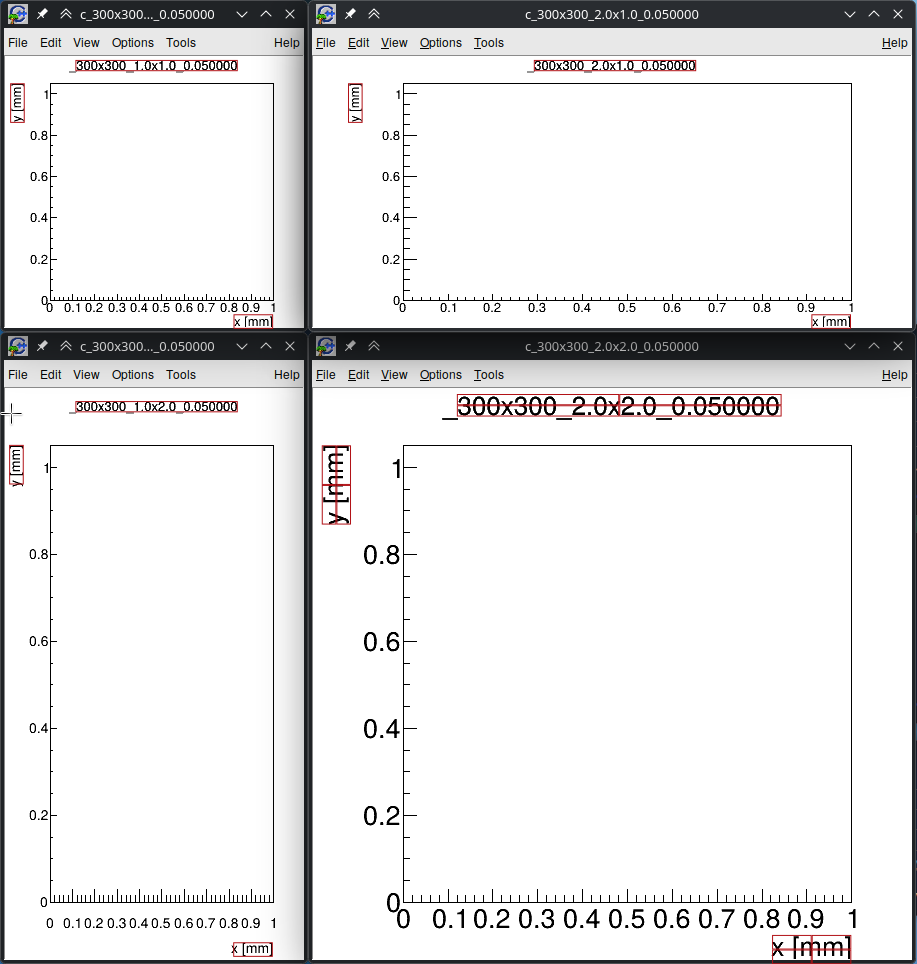 For 1x2 canvas also label offset on the x axis is larger than in other three canvases. All boxes for axis titles are of the same size. Same goes for the histogram title.