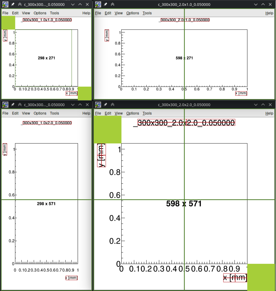So I run a small demo (attached as MWE). I choose a base size of 300 px, and made four canvases with width and height being:
