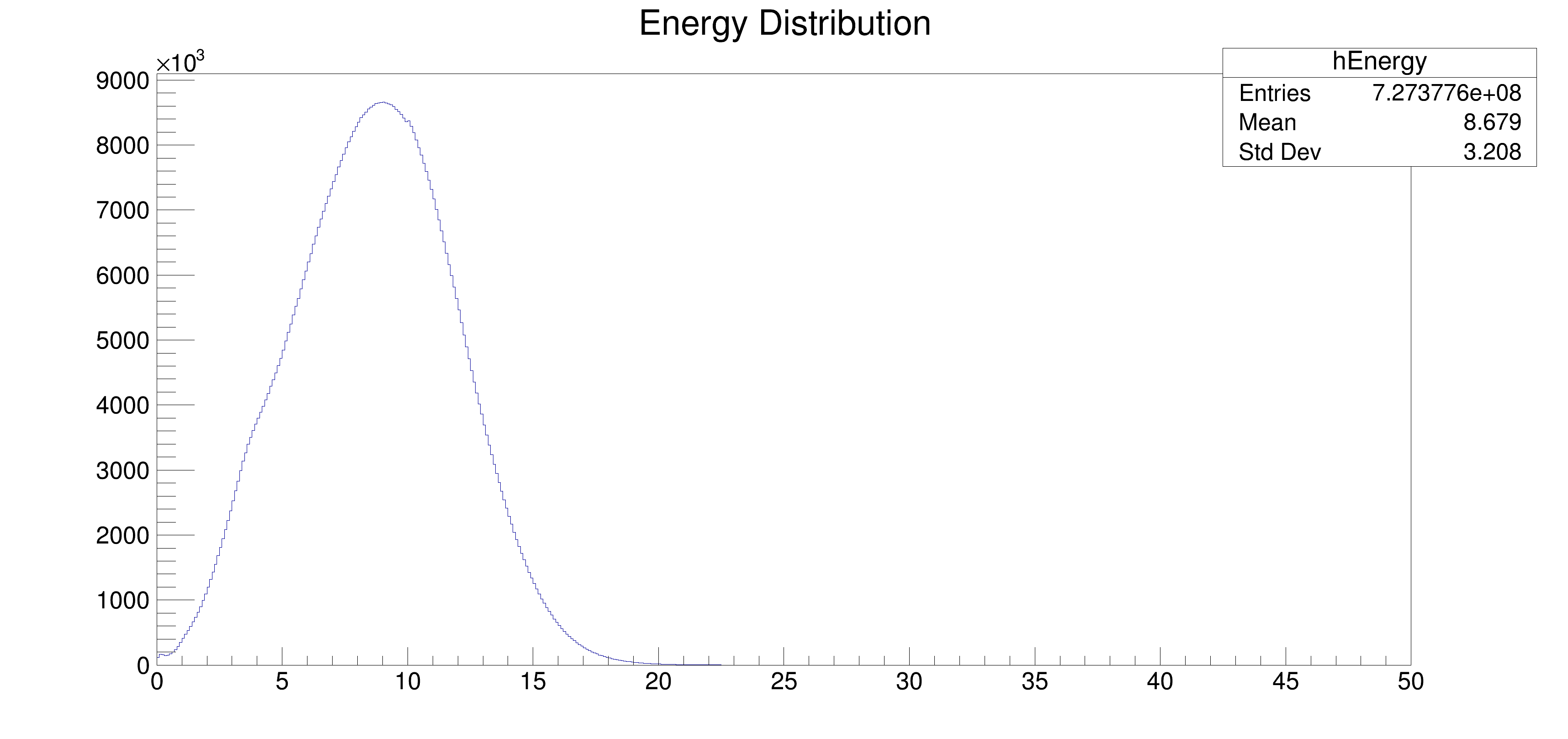 In the example “GainFluctuations“, for some electric field, the distribution of avalanche size is: