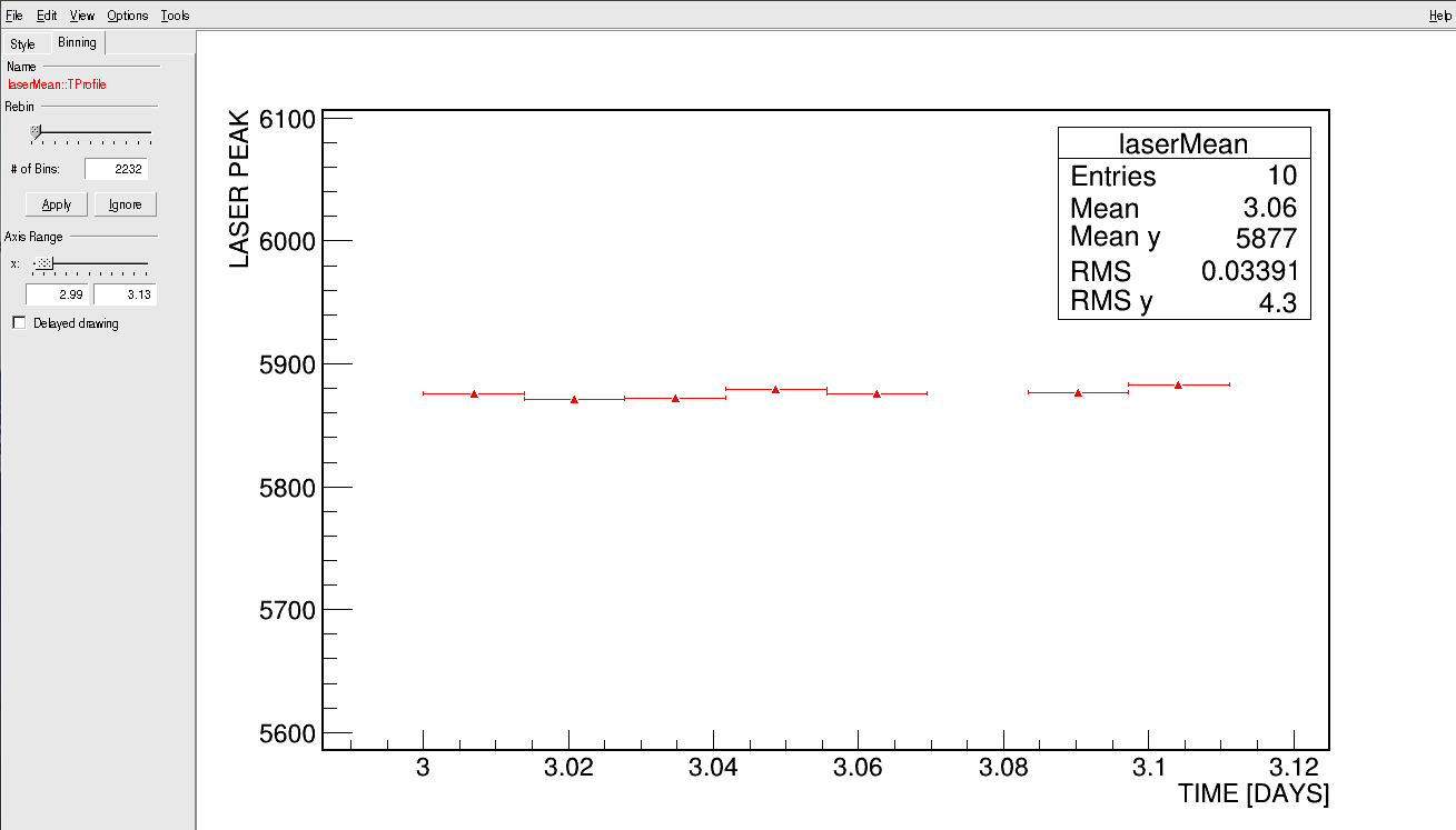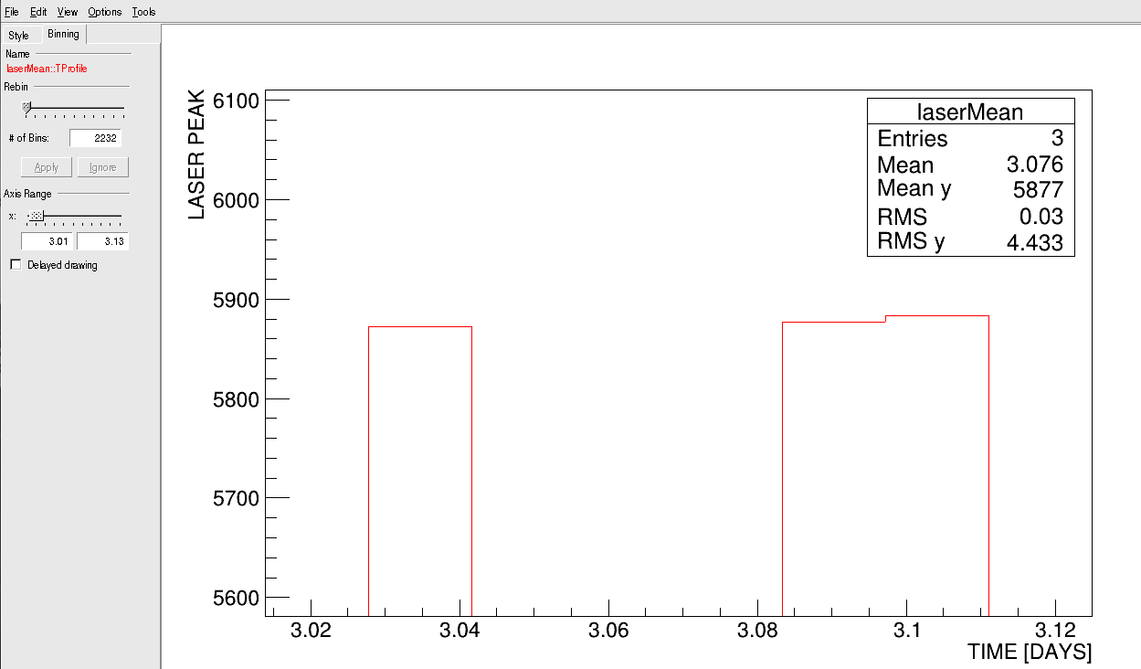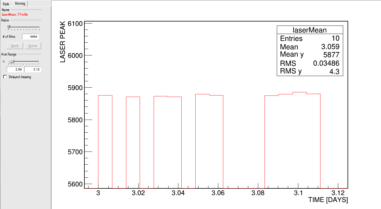 Then I changed the variable “Time” that I was feeding to the TProfile, instead of filling Time + dt/2. I filled just Time and my problem was gone! Nice TProfile with separated points